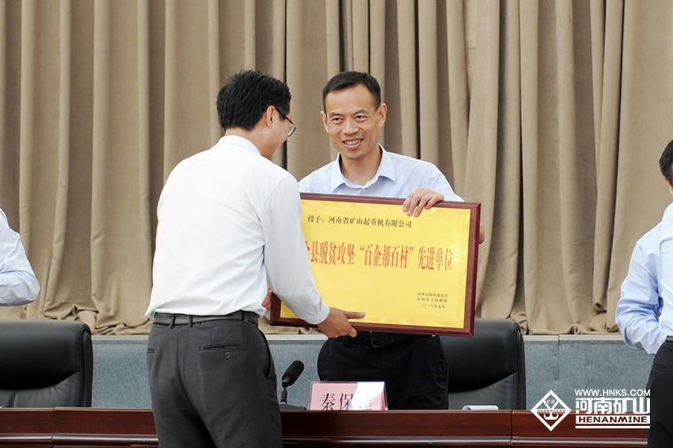 2018年5月9日下午,長垣縣召開“長垣縣脫貧攻堅第七次推進會議”,會議表彰了在扶貧攻堅工作中做出突出貢獻的集體和個人,河南礦山獲得“全縣脫貧攻堅百企幫百村先進單位”稱號。