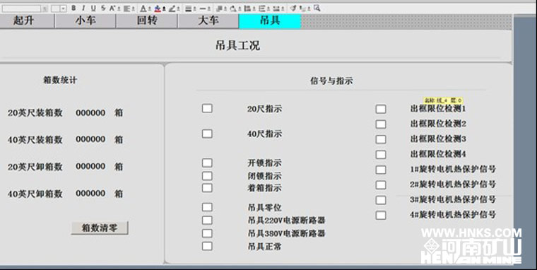 另外該起重機(jī)采用了先進(jìn)的自動控制系統(tǒng),實現(xiàn)了無人化操作功能,如自動尋箱、自動定位、遠(yuǎn)程監(jiān)控、數(shù)據(jù)實時傳輸?shù)?。起重機(jī)還配備有專用“黑匣子”,對各個部位故障快速診斷,能以直觀的方式讓操作者了解起重機(jī)的“健康情況”。為客戶管理貨場提供了解決方案和人性化的操作體驗,在幫助屏幕上附帶了一個專家系統(tǒng),使得整機(jī)反饋能縮小到具體的元件、聯(lián)鎖裝置及開關(guān),并為這一系列數(shù)據(jù)建立了一個數(shù)據(jù)庫,為解決問題提供幫助。