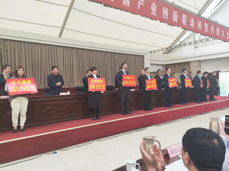 河南礦山榮獲長垣縣起重行業(yè)納稅大戶及創(chuàng)新驅(qū)動轉(zhuǎn)型發(fā)展先進單位,公司總經(jīng)理任海濤等領導參加表彰大會。